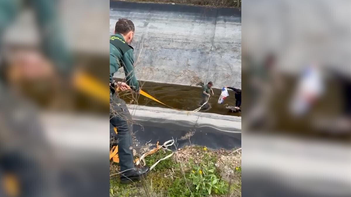 Las imágenes muestran el increíble rescate de una garza por parte de la Guardia Civil en Cáceres. El ave había caído en un canal de riego del Guadiana y no era capaz de salir por sus propios medios.